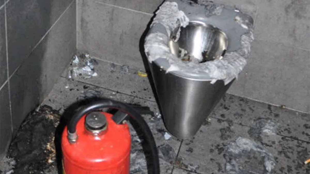 Toilettenspender in Herren-WC wurde angezündet - Betreiber setzen Belohnung für Hinweise aus.