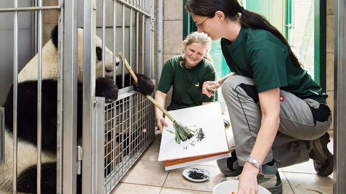 Yang Yang greift zu seit Mitte August zu Bambuspinsel und Farbe. Und das tut sie allem Anschein nach sehr gern.