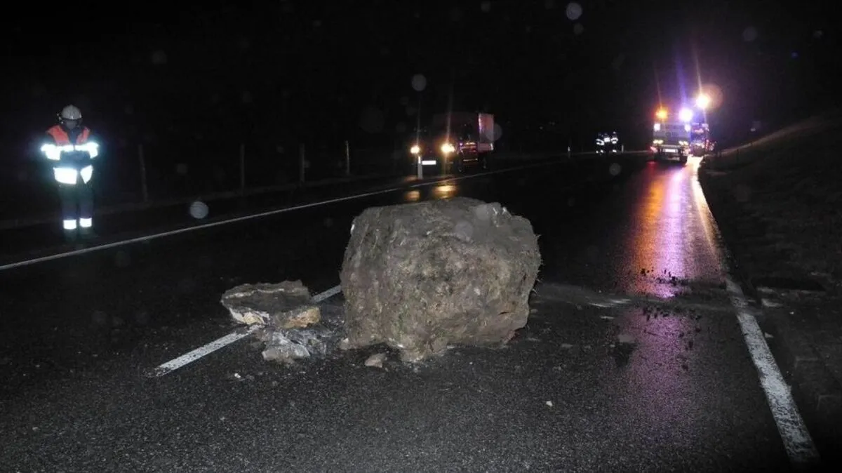 1,8 Tonnen schwerer Felsbrocken stürzte auf Landesstraße