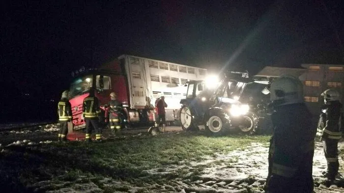 Ein Schweinetransporter ist am Dienstagabend in St. Pölten im Straßengraben hängengeblieben.