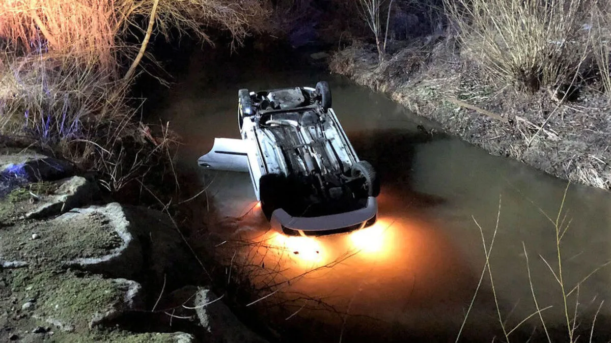Ein 21-Jähriger stürzte am Mittwoch mit seinem Auto in einen Bach. Das Wasser stieg immer weiter, er konnte sich nicht selbst befreien, aber noch einen Notruf absetzen - gerettet.