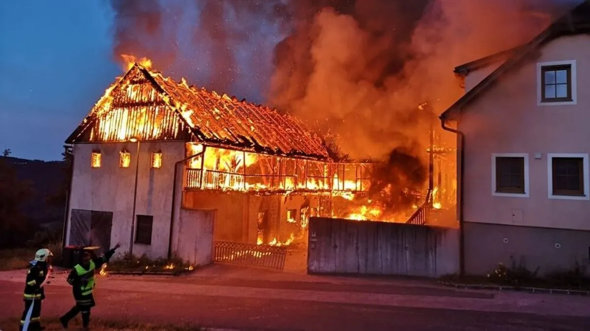 Der Stall stand beim Eintreffen der Löschtrupps bereits in Vollbrand und war nicht mehr zu retten.