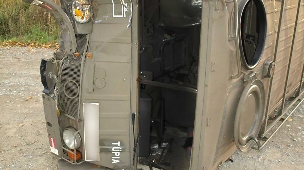 Ein Pinzgauer des Bundesheers krachte gegen einen Baum. Der Lenker hatte einem Rudel Rotwild ausweichen wollen.