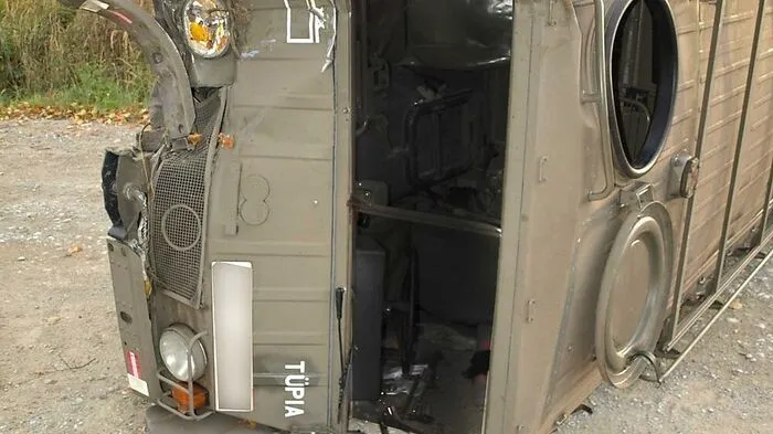 Der schwer beschädigte Pinzgauer