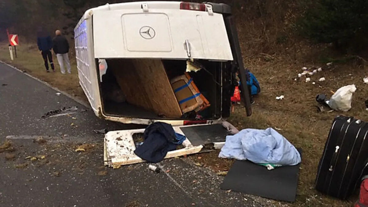 Überbesetzter Kastenwagen stürzte auf Autobahn um