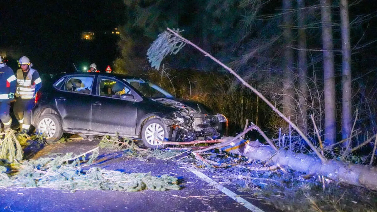 Auto krachte gegen umgestürzten Baum