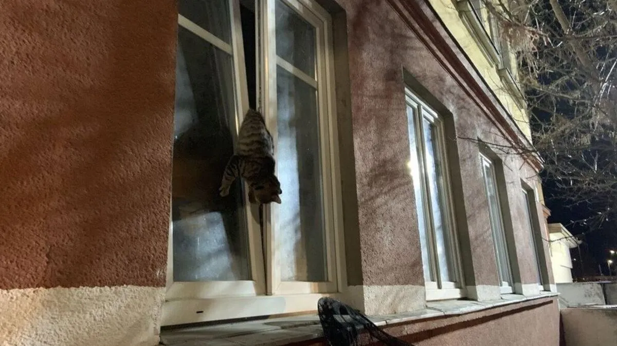 Katze steckte in Fensterspalt fest: Gerettet