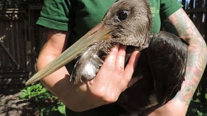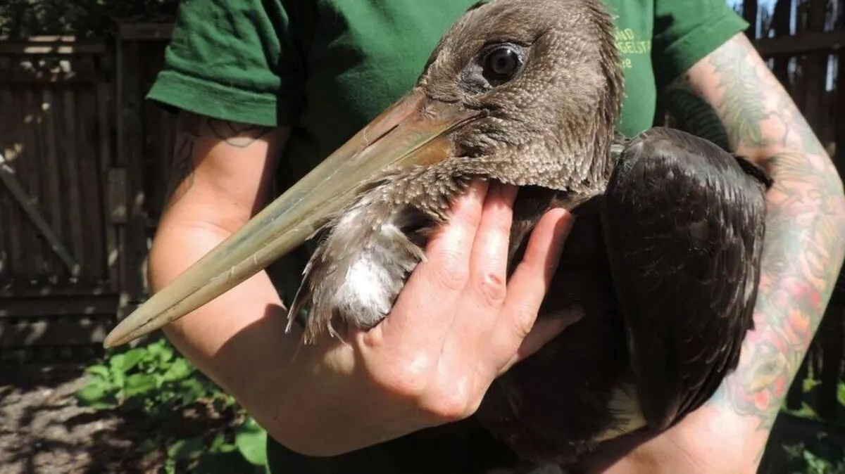Ausgehungerter Schwarzstorch in Garten "notgelandet"