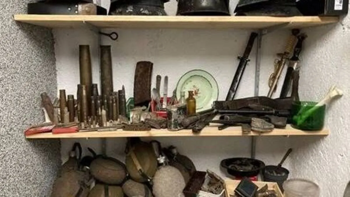 Bei der Hausdurchsuchung wurden Dolche mit Hakenkreuz, Helme, NS-Literatur, Langwaffen, Münzen, Aufnäher und eine Granate entdeckt.