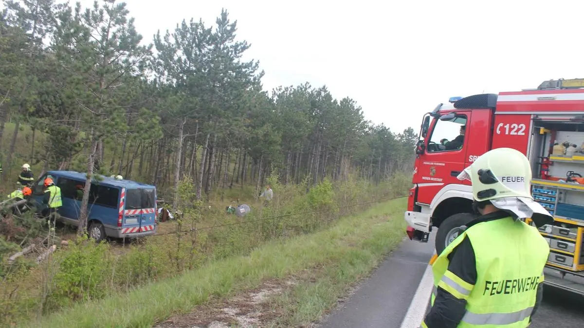 Wie die Freiwillige Feuerwehr Wiener Neustadt in einer Aussendung berichtete, war der Mann, ein laut Polizei 49 Jahre alter polnischer Staatsbürger, aus dem Kleinbus geschleudert worden. Das Fahrzeug blieb in einem Graben seitlich auf dem Opfer liegen. Der 49-Jährige starb an Ort und Stelle. Die vier weiteren Insassen, alle ebenfalls aus Polen, wurden nach der Kontrolle im Spital wieder entlassen. Sie waren Polizeiangaben zufolge unverletzt geblieben. Ein 43-Jähriger hatte den Kleinbus gelenkt, die weiteren Personen an Bord waren 36 bis 63 Jahre alt.