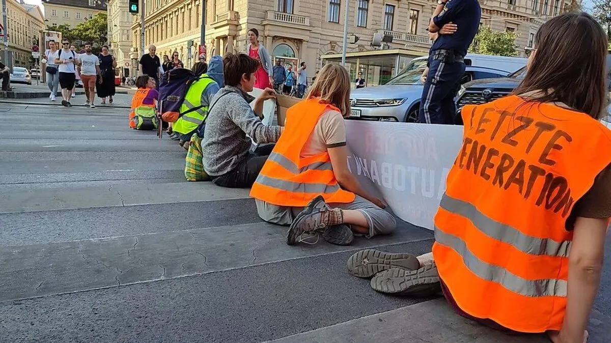 Klimaaktivisten klebten sich auf Wiener Ringstraße fest