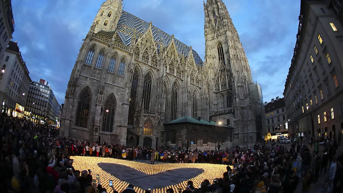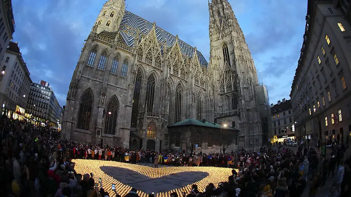 Eine Initiative der Caritas und der ukrainischen Gemeinde am Wiener Stephansplatz machte am Dienstag auf die Hilfe, insbesondere für Kinder in dem geplagten Land aufmerksam.