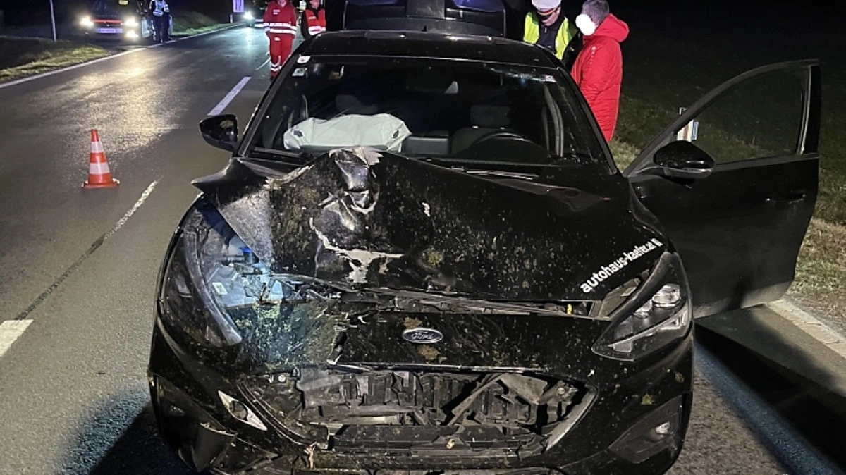 Der Fahrzeuglenker wurde leicht verletzt, das Tier verendete.