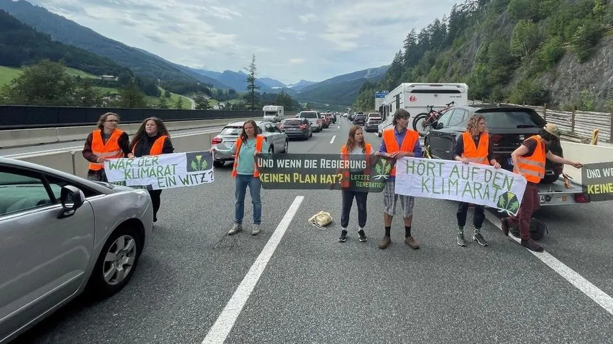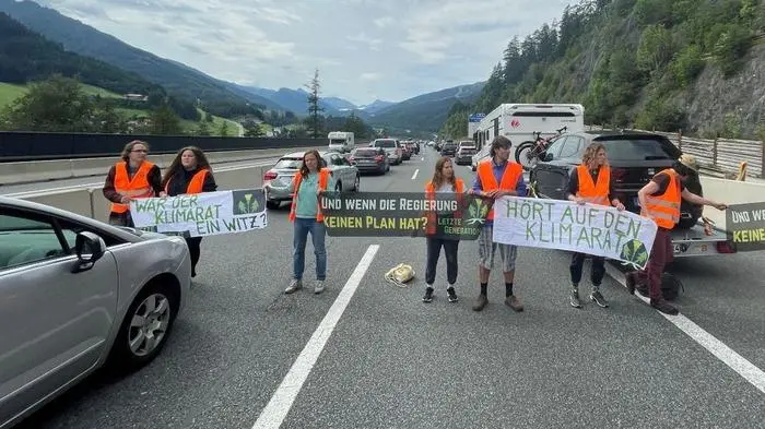 Eine Blockade der Brennerautobahn (A13) in Tirol nahe Matrei am Brenner durch zwölf Klimaaktivisten der "Letzten Generation" ist nach rund einer Stunde gegen Mittag wieder aufgelöst worden. Die Aktivistinnen und Aktivisten mussten mit Anzeigen rechnen. Die Staus aufgrund des starken Urlauberverkehrs begannen sich nach und nach aufzulösen.