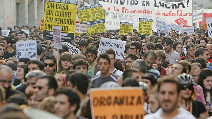 Tausende Jugendliche sind am Donnerstag in Madrid gegen Arbeitslosigkeit, unsichere Jobs und Sparmaßnahmen der spanischen Regierung auf die Straße gegangen.