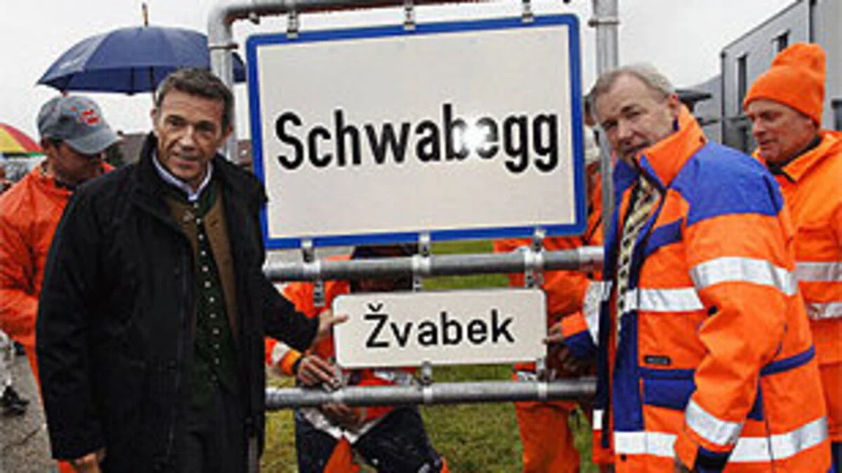 Landeshauptmann Haider lässt kleine slowenische Aufschriften umschrauben. Sie sollen direkt in der Ortstafel montiert werden.