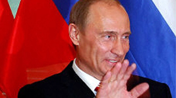 Bildbericherstatter verhaspelte sich bei einer Säule, was Putin zum Beweis seines Humors nutzen konnte.