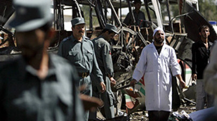 In Kabul explodierte am Sonntag eine Bombe in einem Bus mit Polizeiausbildern.