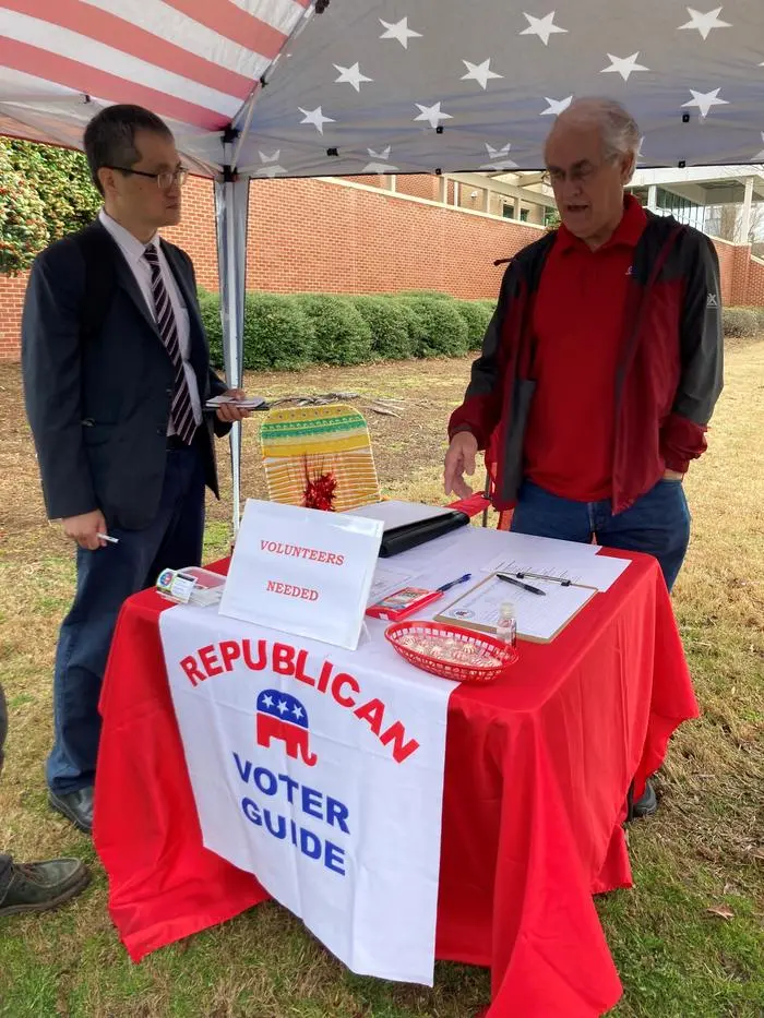 Politik in den USA passiert durchaus nicht aus dem Bauch heraus, sondern das ist gut geplant und organisiert (im Idealfall). Dazu hören wir Steve Bergstrom, Chairman der Republikaner in Wake County, North Carolina, ein wohlhabender, allerdings mehrheitlich demokratischer Wahlbezirk. Bergstrom, Pilot bei einer großen Fluglinie, ist ein großer Trump- und Ronald-Reagan-Fan; sein E-Mail endet auf atreagan.com.
