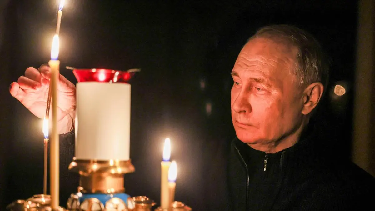RUSSIA - MARCH 24, 2024: Russia s President Vladimir Putin lights a candle to commemorate victims of a terrorist attack on the Crocus City Hall. Mikhail Metzel/Russian Presidential Press and Information Office/TASS PUBLICATIONxINxGERxAUTxONLY 68503937