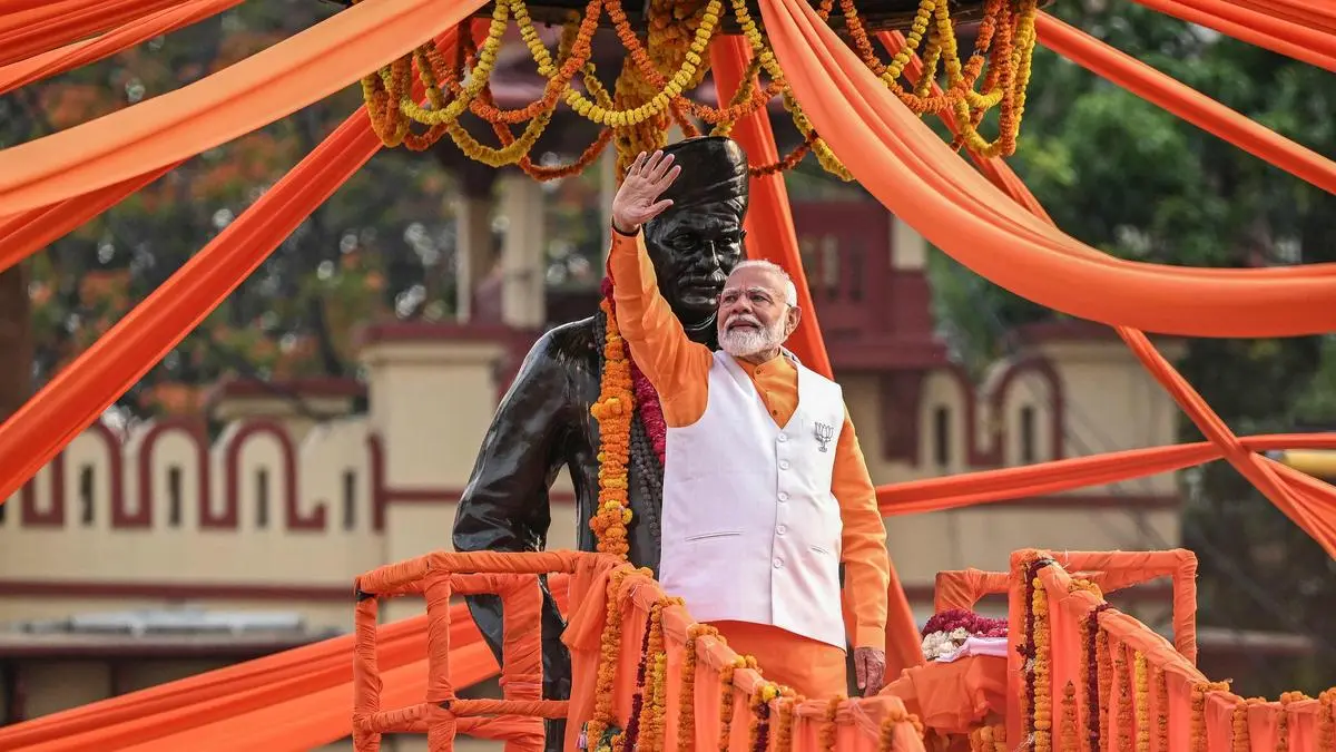 Der indische Premierminister Narendra Modi bei einem Umzug während der Wahlen in Indien.