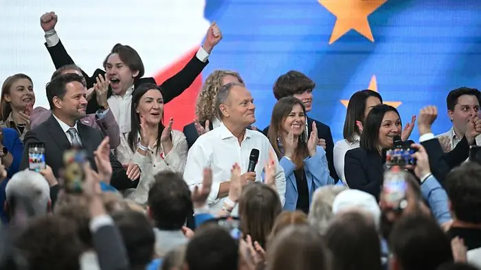 Donald Tusks liberale „Bürgerkoalition“ (KO) hat die oppositionelle, rechtspopulistische Kaczynski-Partei „Recht und Gerechtigkeit“ (PiS) überraschend klar geschlagen. Die liberalkonservative Bürgerkoalition (PO) von Regierungschef Donald Tusk hat laut Prognosen die EU-Wahl in Polen gewonnen. Auf die proeuropäische Partei des früheren EU-Ratspräsidenten entfielen 38,2 Prozent, wie Nachwahlbefragungen des Meinungsforschungsinstituts Ipsos ergaben. Sie kann voraussichtlich 21 Abgeordnete ins Parlament schicken. Die größte Oppositionspartei, die nationalkonservative PiS, lag mit 33,9 Prozent der Stimmen deutlich abgeschlagen auf Platz zwei.