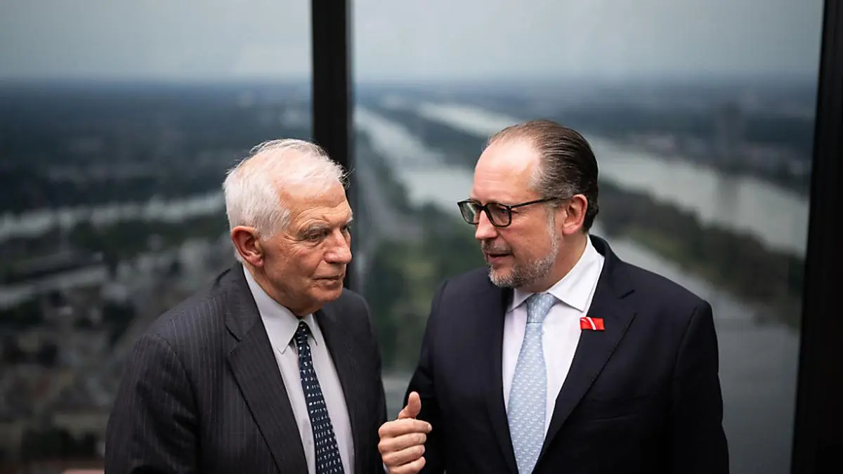Außenminister Schallenberg, hier mit EU-Chefdiplomat Borrell: Rechtliches Verfahren gegen Blockaden