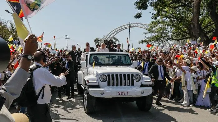 Noch auf dem Rollfeld in Port Moresby wurde der Papst von denjenigen in Papua-Neuguinea begrüßt, die seinen Schutz ganz besonders brauchen: Frauen vom Stamm der Mekeo – in traditionellen Kleidern und mit Gesichtsbemalung geschmückt – hießen das Oberhaupt der katholischen Kirche willkommen.