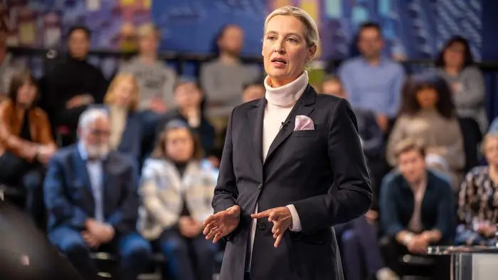 Später sollten auch noch Alice Weidel und Unions-Kandidat Friedrich Merz aufeinandertreffen. „Wir sind so weit auseinander, wie sonst mit keiner anderen Partei“, lässt der in Umfragen Erste die Zweite, die ihm gerade die Hand zur Zusammenarbeit ausgestreckt hat, abblitzen. Würde er also lieber mit den Grünen regieren, hakt Weidel nach. „Also Habeck wieder als Wirtschaftsminister? Sagen Sie doch mal“ Merz geht darauf nicht ein.
