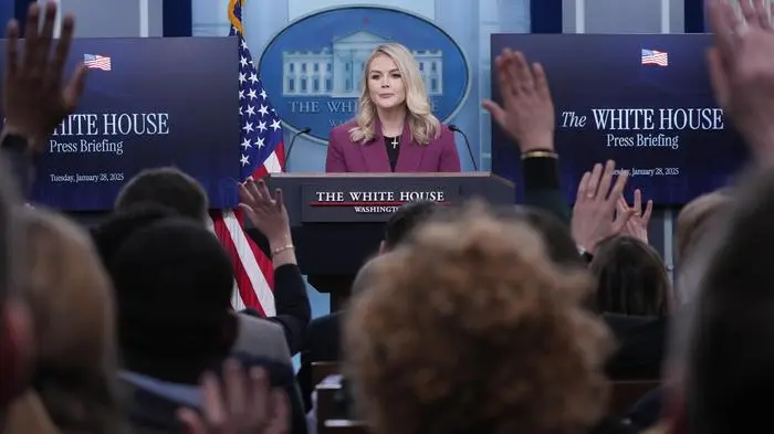 Karoline Leavitt bei einem Pressebriefing im Weißen Haus