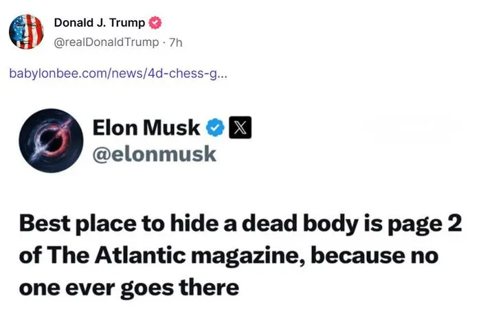 Hegseths Schmähungen widersprachen den Äußerungen des Sicherheitsratssprechers Hughes, der den Chatverlauf als höchstwahrscheinlich authentisch bezeichnet hatte. Trump selbst hatte zuvor erklärt, er habe von dem Gruppenchat noch nicht gehört, sei aber ohnehin „kein großer Fan“ des „Atlantic“-Magazins. Er teilte auch einen Tweet seines Vertrauten Elon Musk, in dem der regelmäßig gegen kritisch berichtende Medien austeilende Tech-Milliardär lästerte, der beste Ort zum Verstecken einer Leiche sei die Seite zwei des „Atlantic“ - weil dort nie jemand hinschaue.