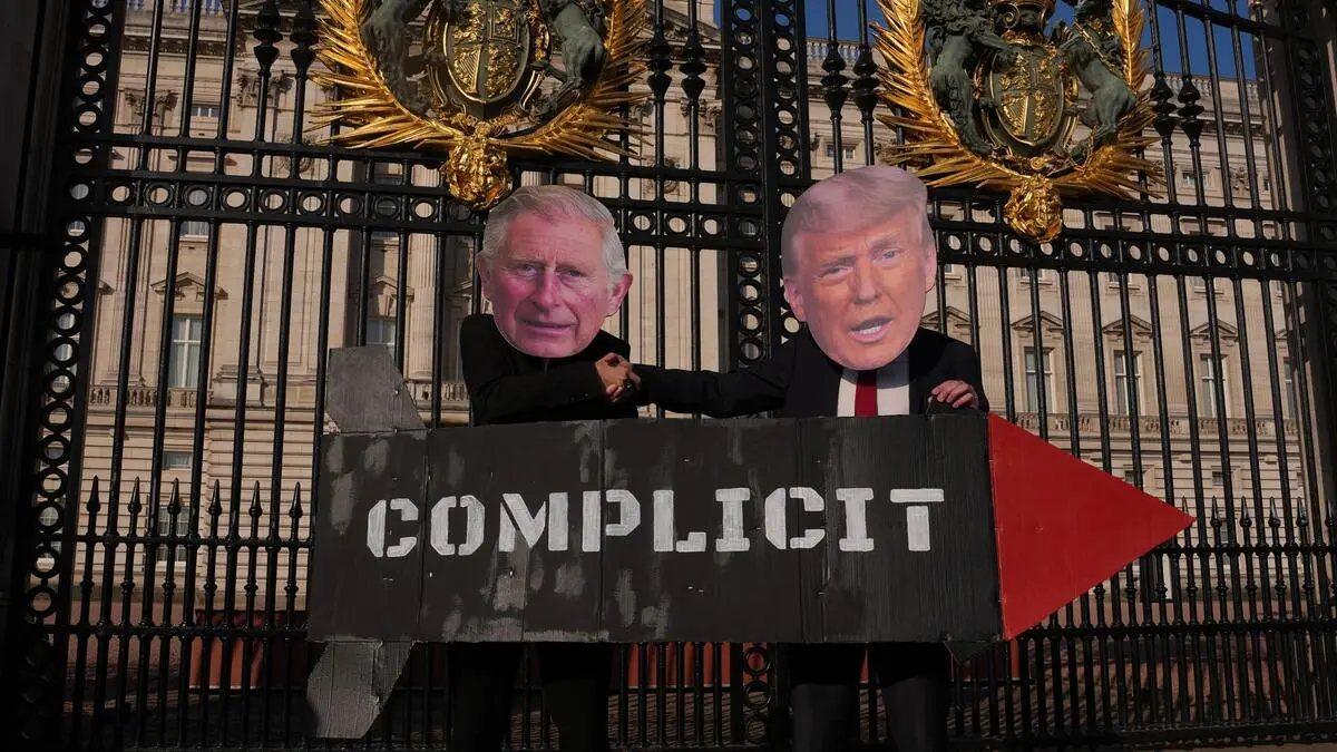 Bereits im Vorfeld des Staatsbesuchs verliehen Demonstranten vor dem Buckingham Palace in London ihrem Unmut über die Visite Ausdruck