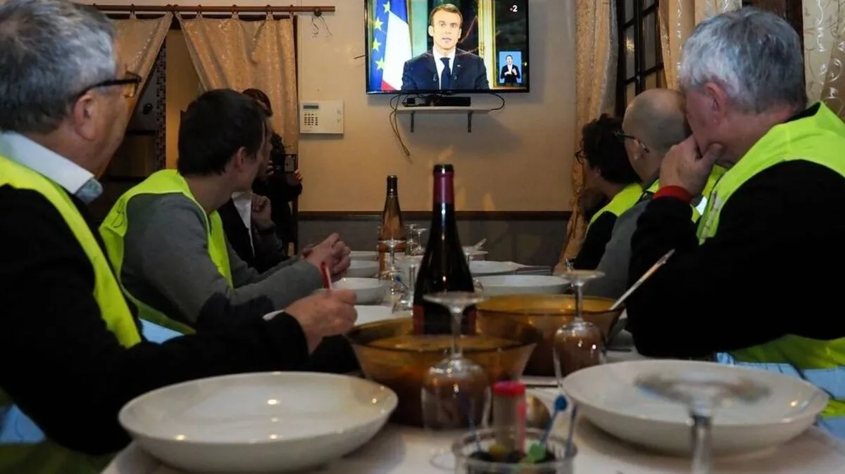 Mit Skepsis verfolgten die Gelbwesten Macrons Rede