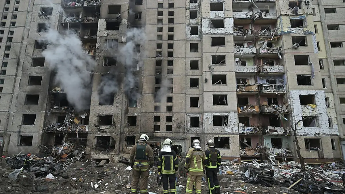 Zerstörte Wohnhäuser nach Angriffen in Charkiw