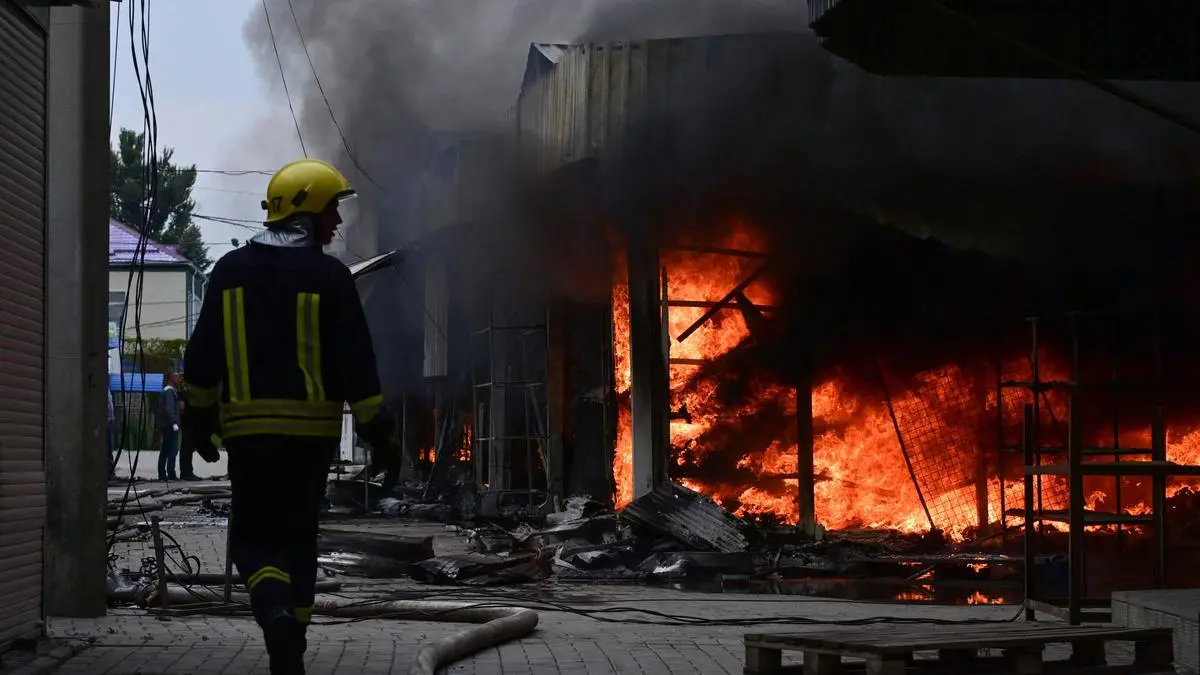 Dem Bürgermeister zufolge richtete sich der Angriff gegen den zentralen Markt der Stadt. Mehrere Raketen schlugen laut AFP-Journalisten vor Ort auf dem Marktplatz und in angrenzenden Straßen ein. Der Markt geriet in Brand, die Feuerwehr versuchte, die Flammen zu löschen.