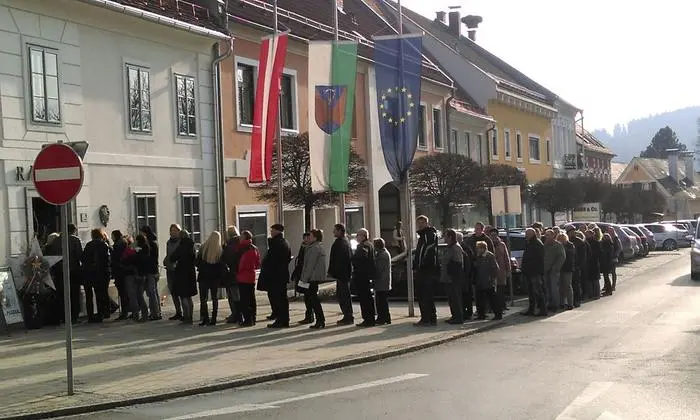 Nicht nur in Kumberg, auch in Passail (ebenfalls Steiermark) steht man Schlange. Und das kurz vor Schließen des Wahllokals.