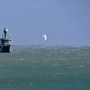 Frontex-Schiff (im Hintergrund) vor der griechischen Küste in Lesbos: Untersuchungen über illegale Pushbacks