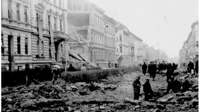 Der Ostermontag des Jahres 1945 trägt das Datum 2. April. An diesem Feiertag greifen rund 350 anglo-amerikanische Bomber und Jäger in neun Wellen besonders die strategisch wichtigen Eisenbahneinrichtungen an. 95 Menschen kommen ums Leben. In diesen Tagen wird auch ein Teil der noch in der Stadt befindlichen Zivilbevölkerung evakuiert. Besonders groß fallen die Bombenschäden am rechten Murufer aus, bei den Bahnhof- und den Industrieanlagen. Es gibt außer dem alliierten Luftbild für Bombenziele auch einen nicht aktivierten Graz- Bombenplan der Deutschen Luftwaffe mit dem Datum 6. 4. 43 und dem Vermerk „Geheime Kommandosache.