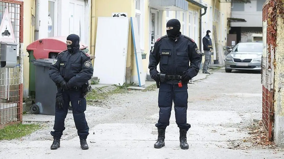 Vermummte Polizisten vor einem Haus | 2020 fanden im Zuge der „Operation Luxor“ großangelegte Razzien statt