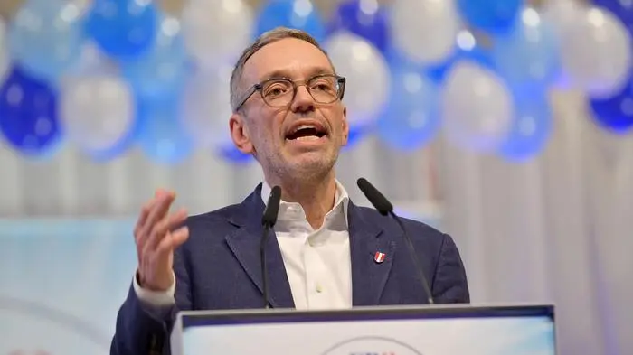 Draußen vor der Halle seien „meine treuen Begleiter“, die „Omas gegen Rechts“. Im Alter werde man eben nicht zwingend gescheiter, sonst hätte Niederösterreichs Landeshauptfrau „Johanna Mikl-Leiter davon auch profitiert“. „Liebe Grüße“ schickt Kickl AfD-Chefin Alice Weidel nach Deutschland, lobende Worte gibt es auch für Jörg Haider, „der sich nie ein Blatt vor den Mund genommen hat“. Man sei gegen ihn gewesen, aber „heute sind wir es, die recht haben“. Ein „demokratischer Klimawandel“ werde die anderen Parteien „zusammenstutzen“.