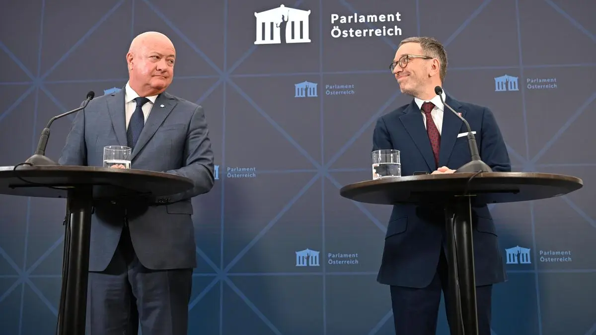 Wenige Tage, nachdem FPÖ und ÖVP die Gespräche über eine Blau-Schwarze-Koalition aufgenommen haben, traten die beiden Parteien am Montag vor die Presse, um eine erste Einigung zu verkünden – auf die Budgetkonsolidierung im Jahr 2025. Diese wird ohne Defizitverfahren der EU angestrebt, was Einsparungen in der Höhe von 6,3 Milliarden Euro nötig macht. Details wurden nur wenige verraten.