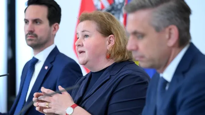 Nach dem Ministerrat am frühen Nachmittag traten noch die Parteichefs von ÖVP, SPÖ und Neos vor die Presse. Andreas Babler (SPÖ) kündigte an, dass der Gesetzesentwurf für die Bundesstaatsanwaltschaft vor dem Sommer vorliegen soll. Auch soll die Pflege zur Schwerarbeit erklärt werden und ein Pensionsantritt mit 45 Versicherungsjahren im Alter von 60 Jahren möglich werden. Beate Meinl-Reisinger (Neos) kündigte an, dass bis Ostern ein neues Programm zur Deutschförderung präsentiert werde.