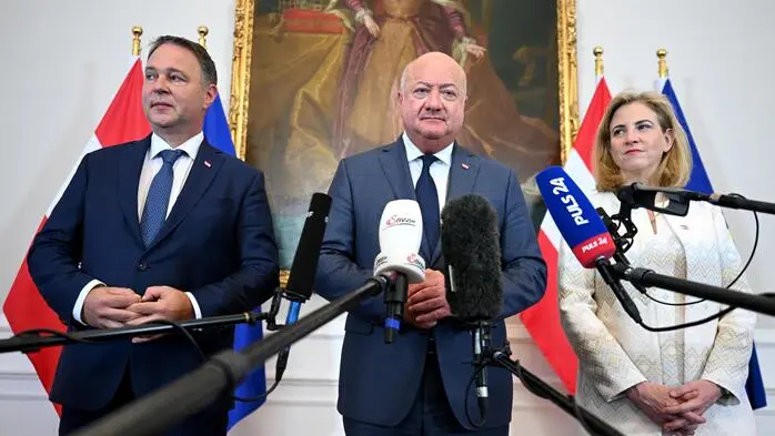 Demnächst wieder auf Klausur: Vizekanzler Andreas Babler (SPÖ), Kanzler Christian Stocker (ÖVP) und Außenministerin Beate Meinl-Reisinger (Neos)