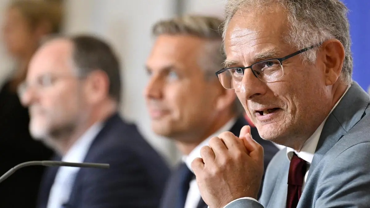 Finanzminister Markus Marterbauer (r.), Energieminister Wolfgang Hattmannsdorfer und Staatssekretär Josef Schellhorn.