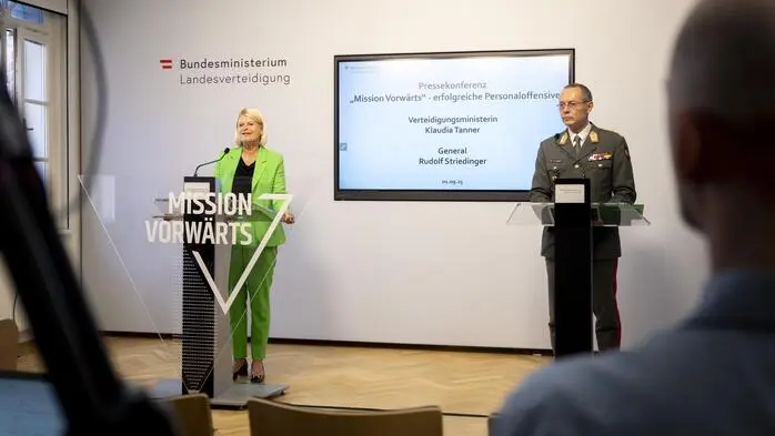 Thema der Pressekonferenz war die Bilanz des Bundesheeres über das abgelaufene Jahr. Tanner informierte dabei über einen Netto-Personalzuwachs von knapp 700 Personen, auch die Zahl der Miliz-Unteroffiziere stieg um 6 Prozent. Gleichzeitig hätten sich zuletzt 57 Prozent der jungen Männer für den Grundwehrdienst entschieden; zuvor lag die Quote bei 54 Prozent.