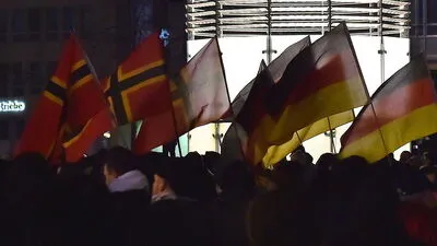 Zum Auftakt eine Blockade: Die erste Protestversammlung des heimischen Pegida-Ablegers wurde von den Gegendemonstranten verhindert. Die Polizei löste die Kundgebung auf.