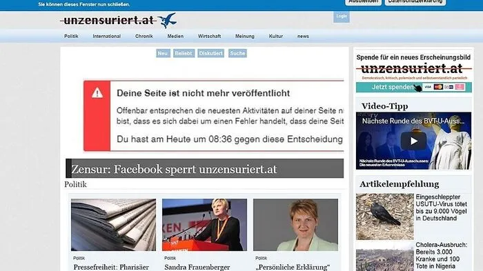 Facebook sperrte FPÖ-nahe Seite Unzensuriert.at