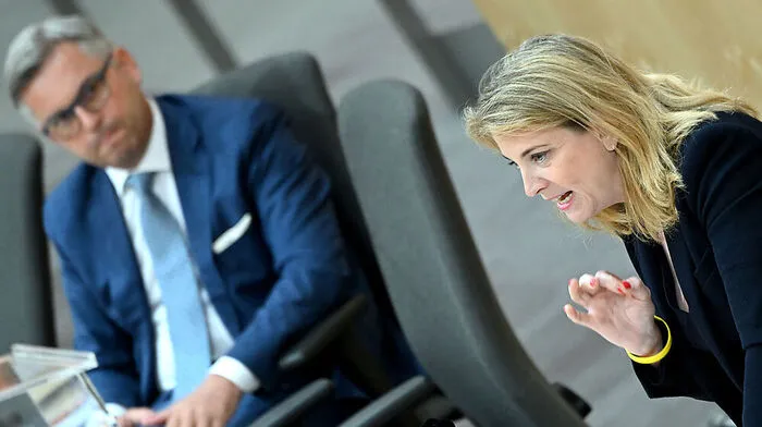 Neos-Chefin Meinl-Reisinger und Finanzminister Brunner (ÖVP)