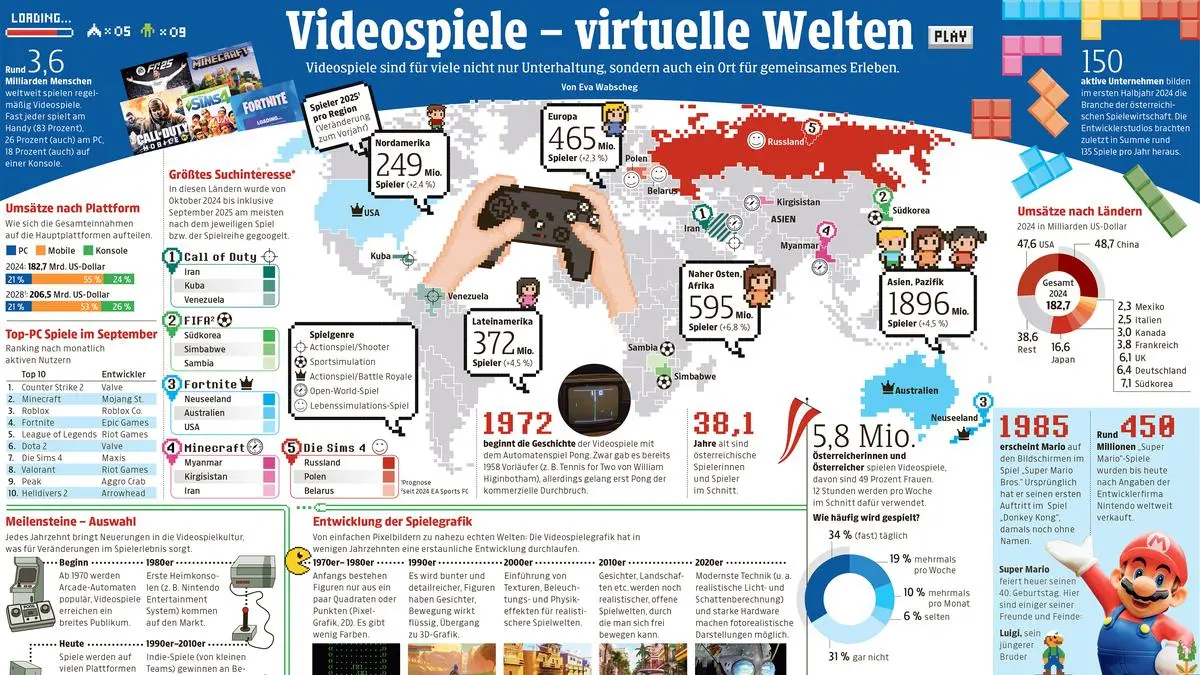 Die beliebtesten Spiele weltweit, Meilensteine der Videospielkultur, Umsätze und vieles mehr bietet diese Infografik.