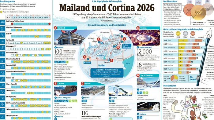 Alles was Sie über Mailand und Cortina 2026 wissen müssen: das Programm, die Austragungsorte und Sportstätten, die Medaillen und Maskottchen und vieles mehr.